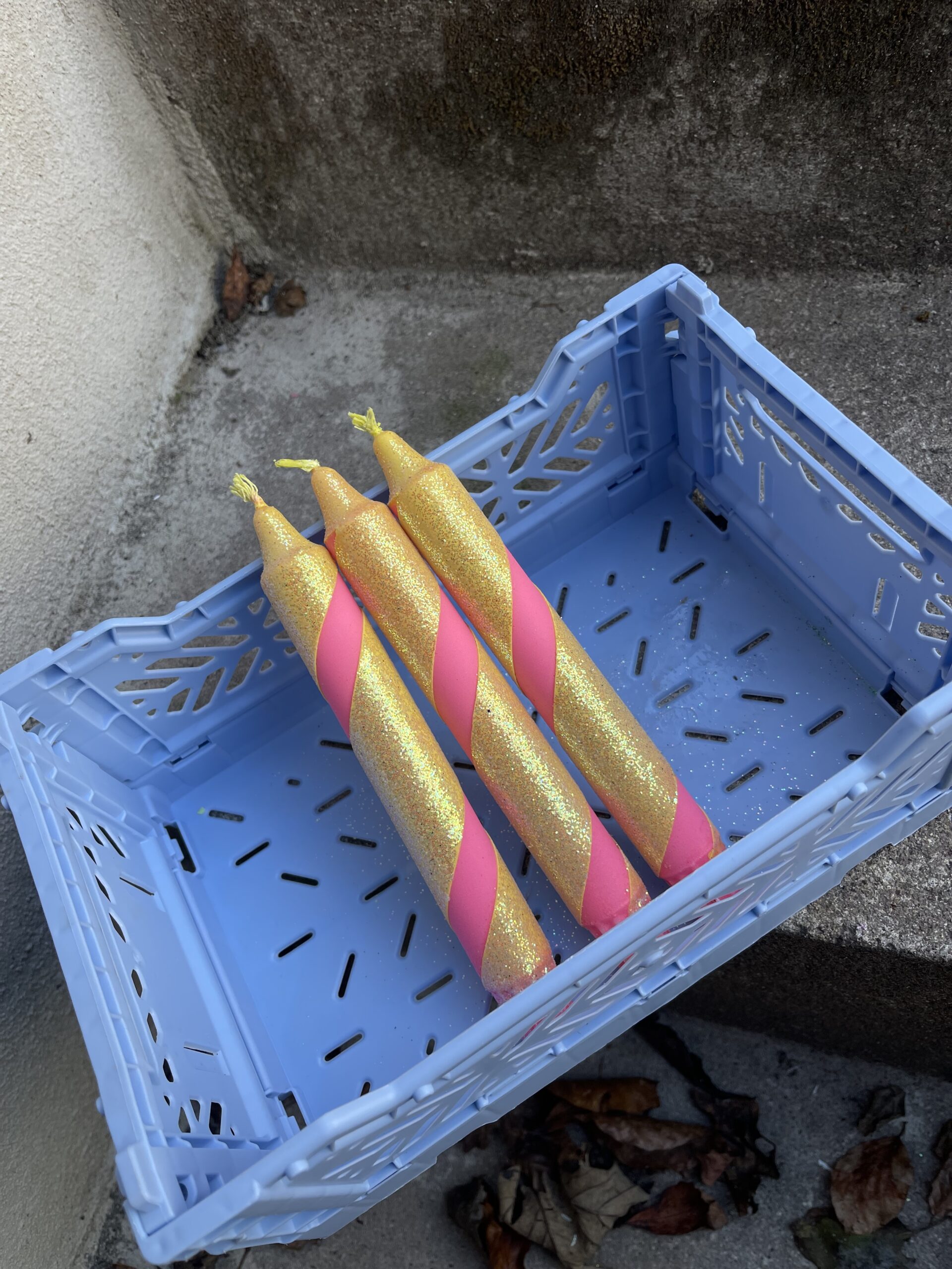 1STK HÅNDLAVET STEARINLYS MED GLIMMERBUND