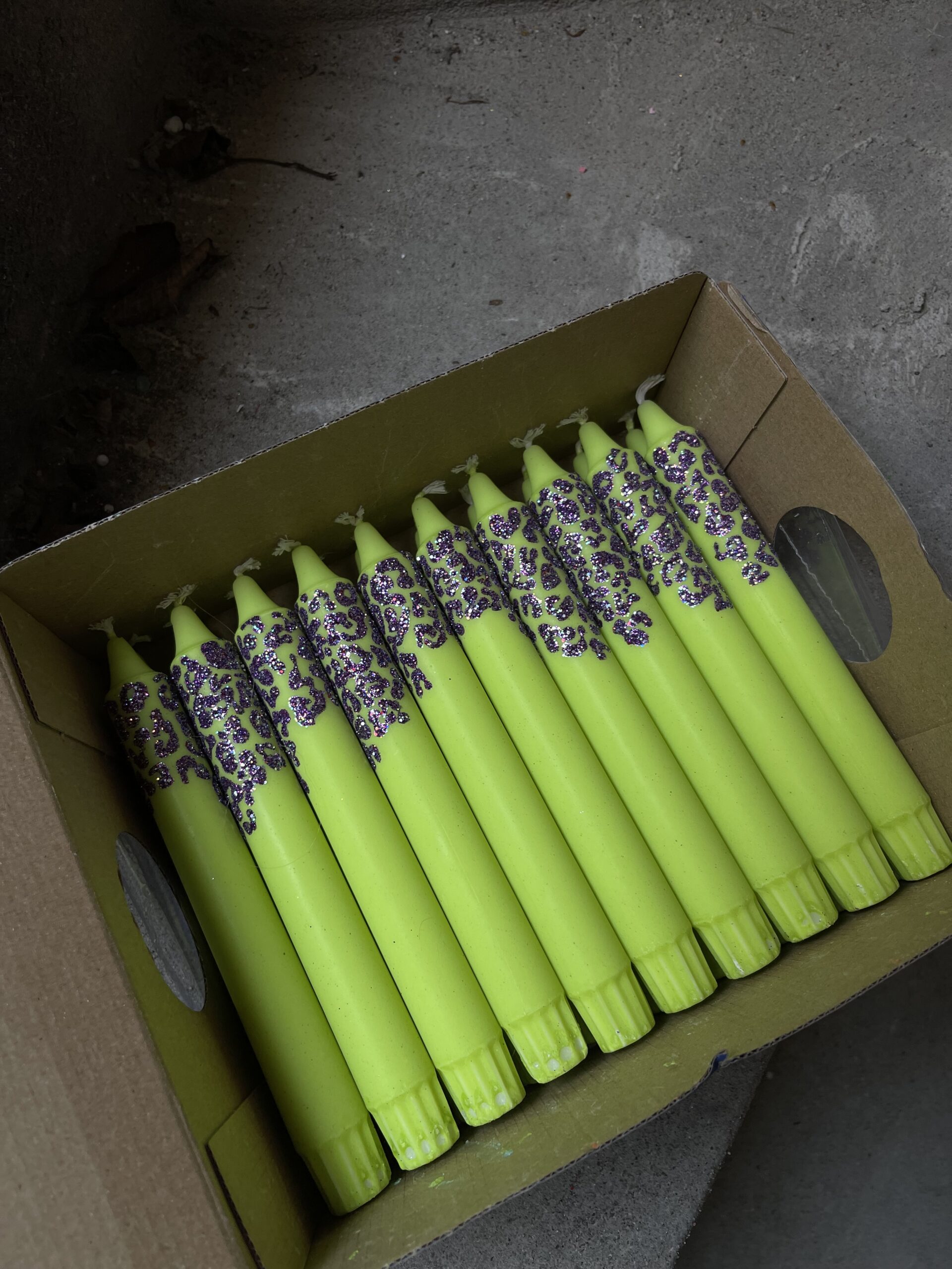 Lysene bliver hånddekoreret med alt fra glimmer og perler til akryl og lak for at opnå de unikke, hånddekorerede udtryk. Lysene egner sig derfor bedst som dekorationsgenstande og ikke som hyggebelysning.