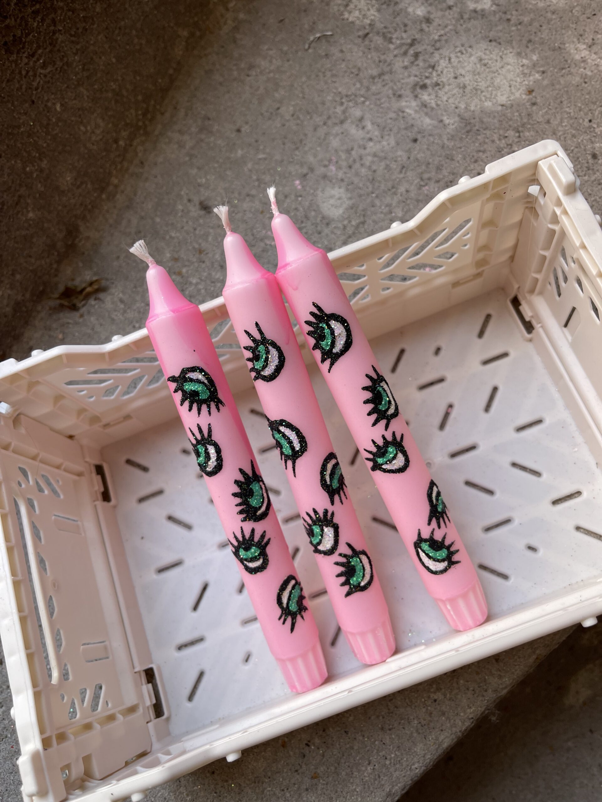 Lysene bliver hånddekoreret med alt fra glimmer og perler til akryl og lak for at opnå de unikke, hånddekorerede udtryk. Lysene egner sig derfor bedst som dekorationsgenstande og ikke som hyggebelysning.